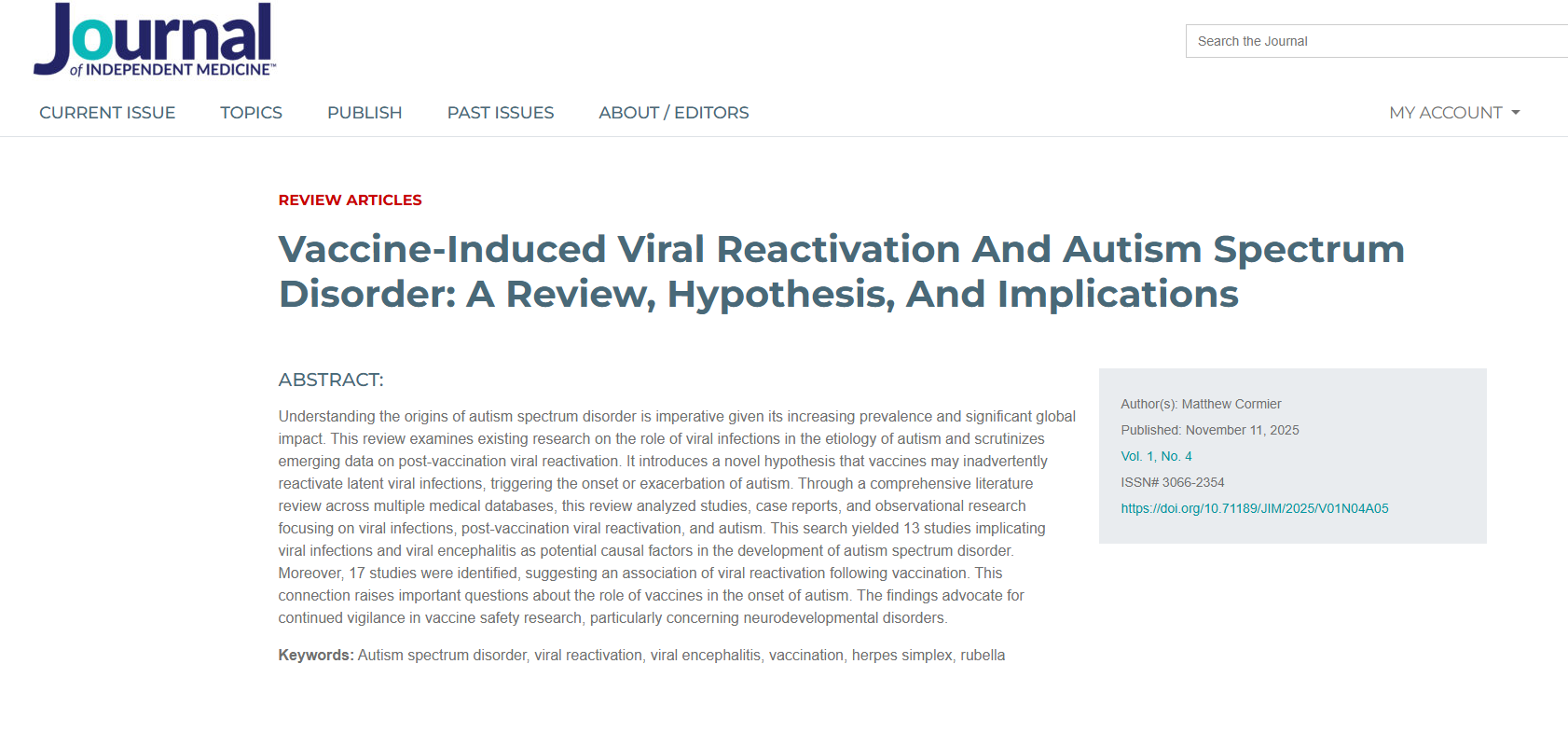 Peer Reviewed and Published: Vaccine-Induced Viral Reactivation and Autism Spectrum Disorder.