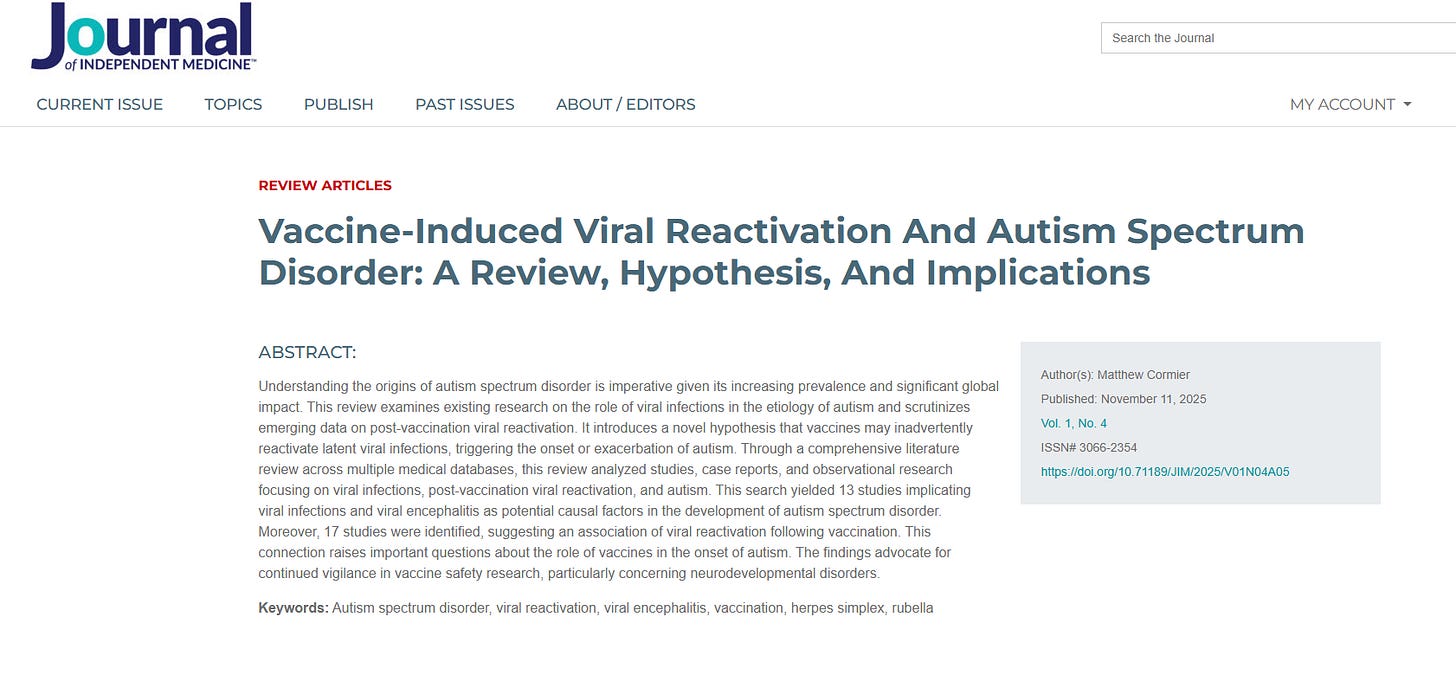 Today is an important day for me and the culmination of 12 years of diligent work, my research article on the link between vaccinations and autism has been published in the Journal of Independent Medicine!